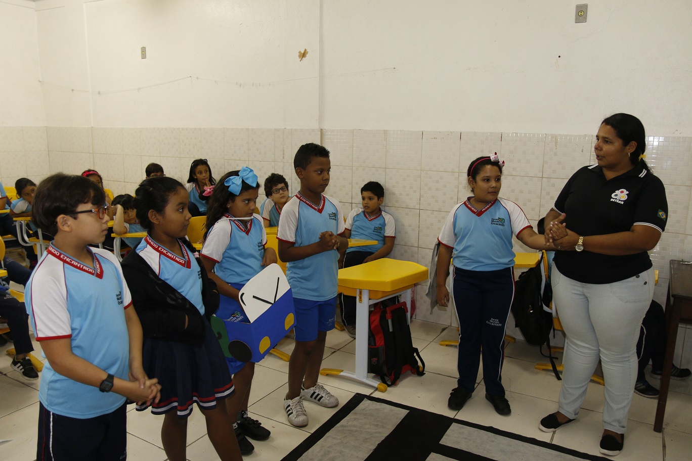 O Departamento de Trânsito do Estado (Detran) por meio da Coordenadoria de Educação, realizou, na manhã desta sexta-feira (24), ação educativa com crianças do 3º ano do Ensino Fundamental na Escola Mundo Encantado. Com o tema Trânsito, a atividade focou nos conceitos fundamentais para um trânsito mais seguro. Foram realizadas palestras interativas, trabalhos de memorização e orientação especial sobre o uso da faixa de pedestres.